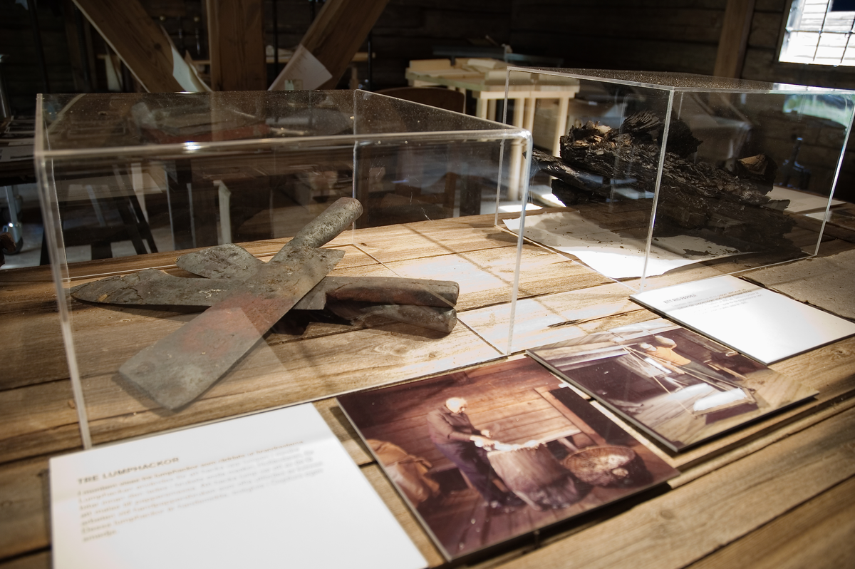 Interiör från pappersmagasinet med utställning om branden och demonstration av papperstillverkning