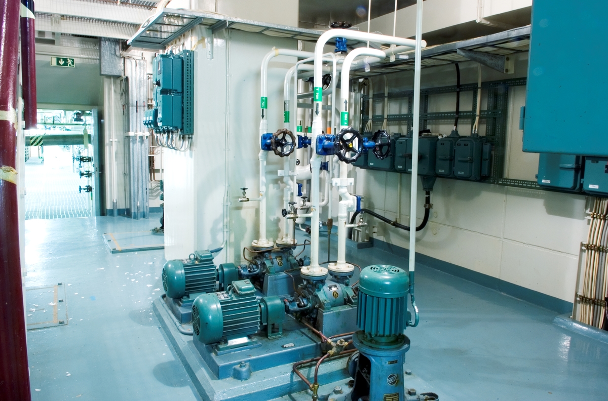 Bilden föreställer: Plan 04 pumprum 0424. I bild syns system P205. Installationer: P205, P206, P208, P209, P220, P248, P250, samt P326. Förklaring av system framgår av rapport :Statens Vattenfallsverk A23/60 5/4 1960.
