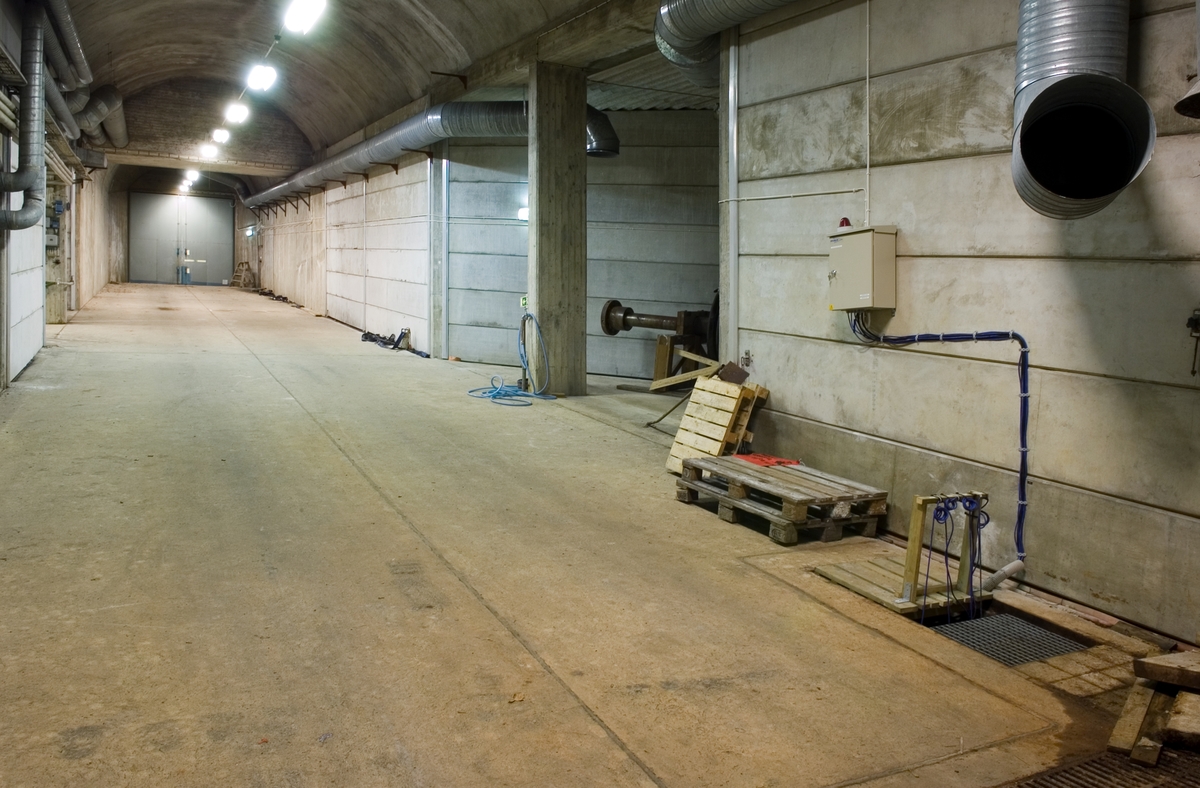 Bilden föreställer: Markplanet. Transporttunnel in till reaktordelen. Bilden tagen från yttre slussport mot utgången. Lastbilar tvättades här för att sedan få köra in i slussen. Förklaring av system framgår av rapport :Statens Vattenfallsverk A23/60 5/4 1960.