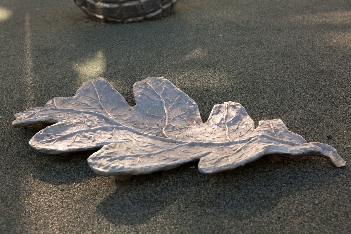 Titel: Tekniska museet exteriör med matematikträdgården, detalj.