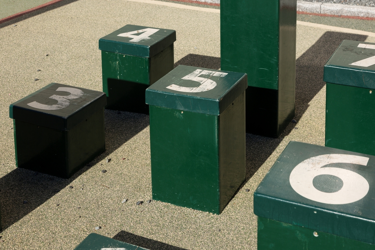 Tekniska museet exteriör med matematikträdgården, detalj.