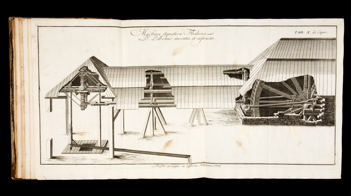 Emanuel Swedenborg, Uppslag med ritning föreställande en stånggång av Polhem ur bok från 1734.
