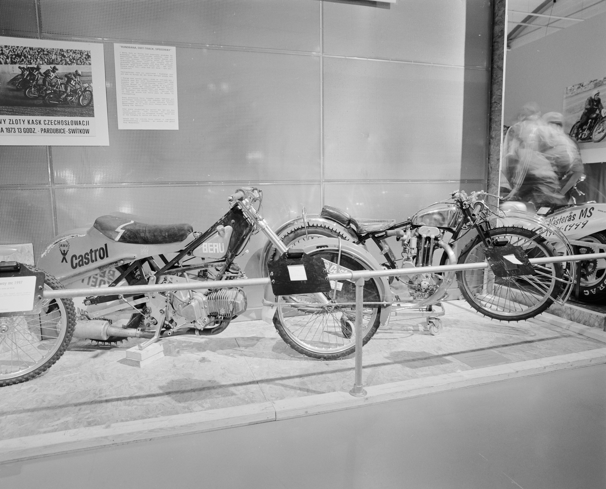 Dokumentation av "Motorcykeln 100 år" i Wallenberghallen. Speedway-mc.