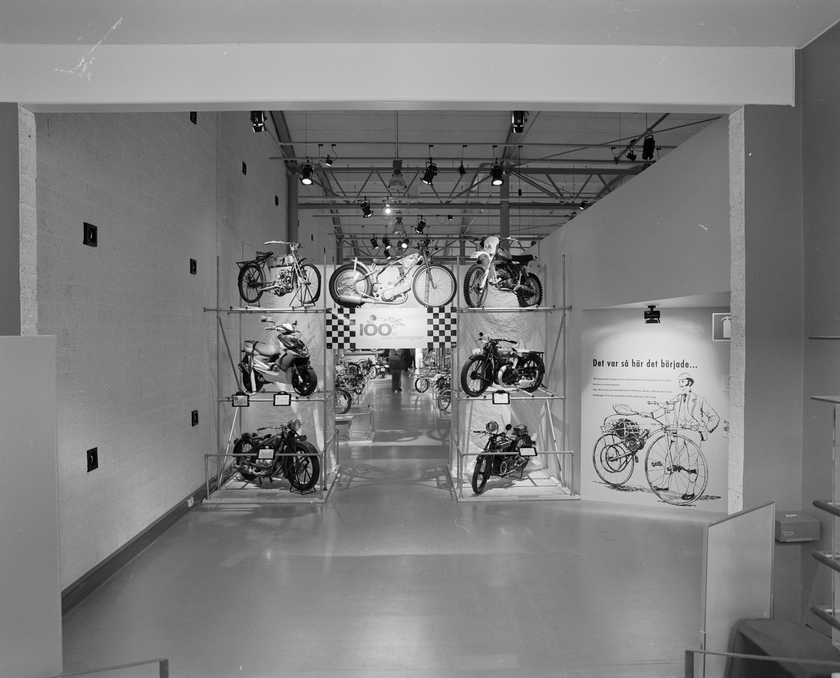 Dokumentation av "Motorcykeln 100 år" i Wallenberghallen. Entréportalen.