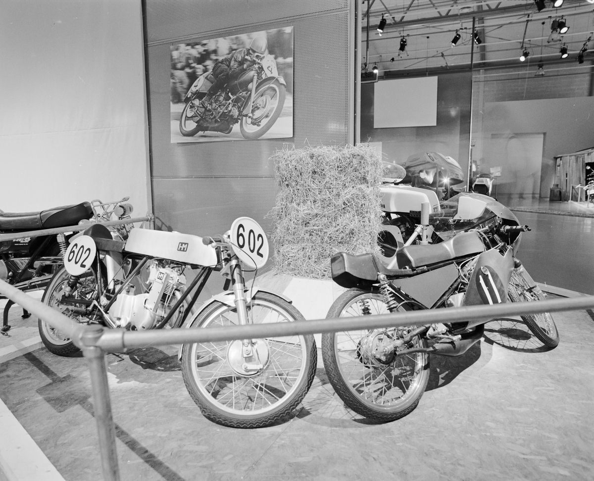 Dokumentation av "Motorcykeln 100 år" i Wallenberghallen. Rundbane-mc.