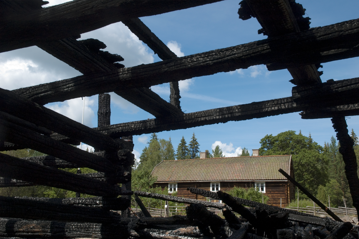 Brandplatsen med mangårdsbyggnaden i bakgrunden