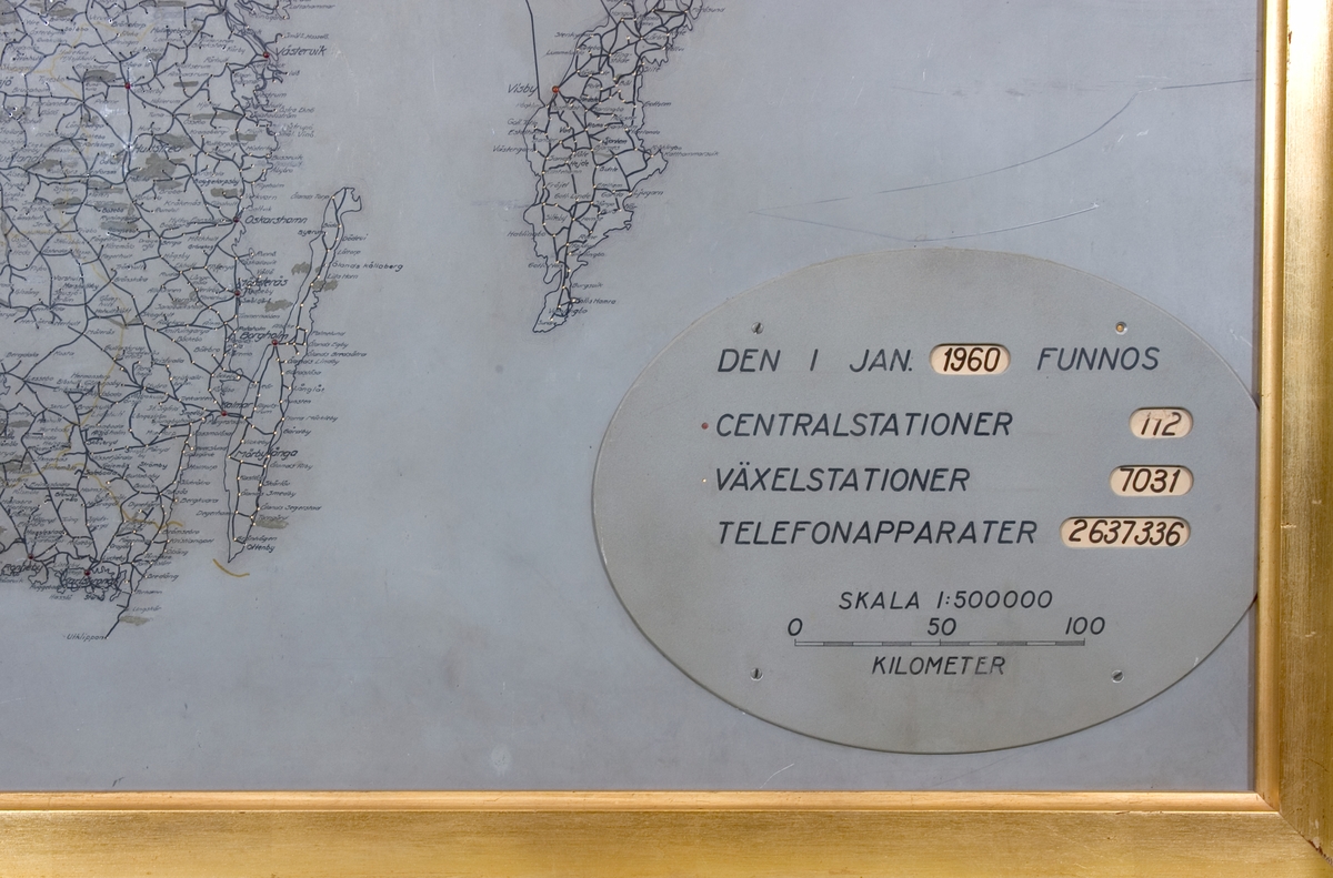Dokumentation av Sessions rummet i gamla Telemuseum, norra Stallet. Rummet är rivet nu och inventarier är sparade. detta är en del av den karta med lampor i som hängde på väggen i rummet.