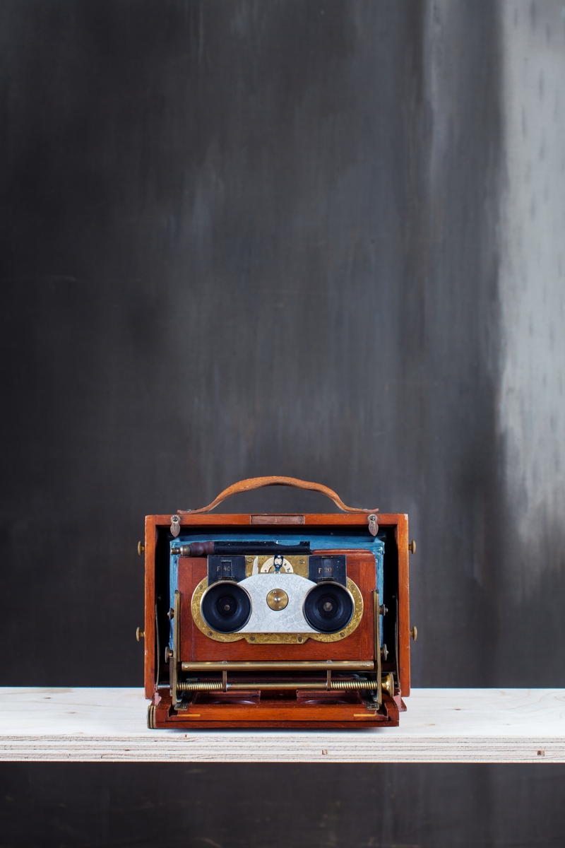 Stereokamera från som den engelska kameratillverkaren J. Lancaster & Son i Birmingham började tillverka på 1890-talet.