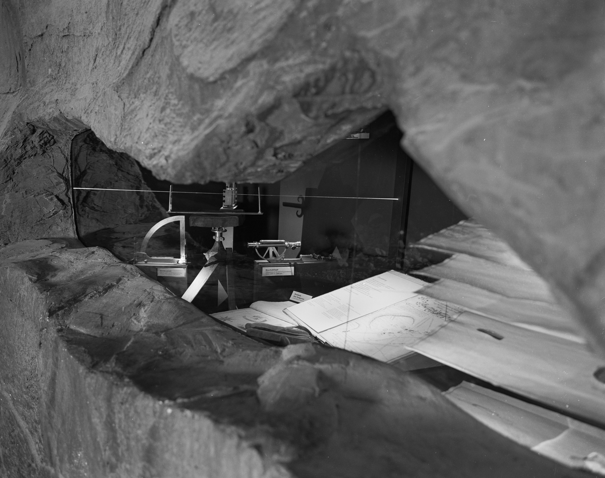 Dokumentation av Gruvan. Monter i berget med mätinstrument.