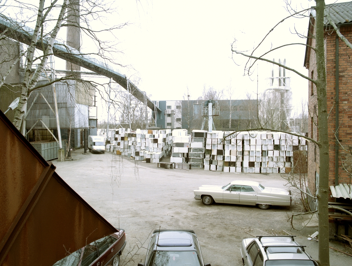 Bildtext: Den gamla sopförbränningsanläggningen på höger sida, kyl/frys återvinning rakt fram och den senare sopförbränningsanläggningen till vänster.