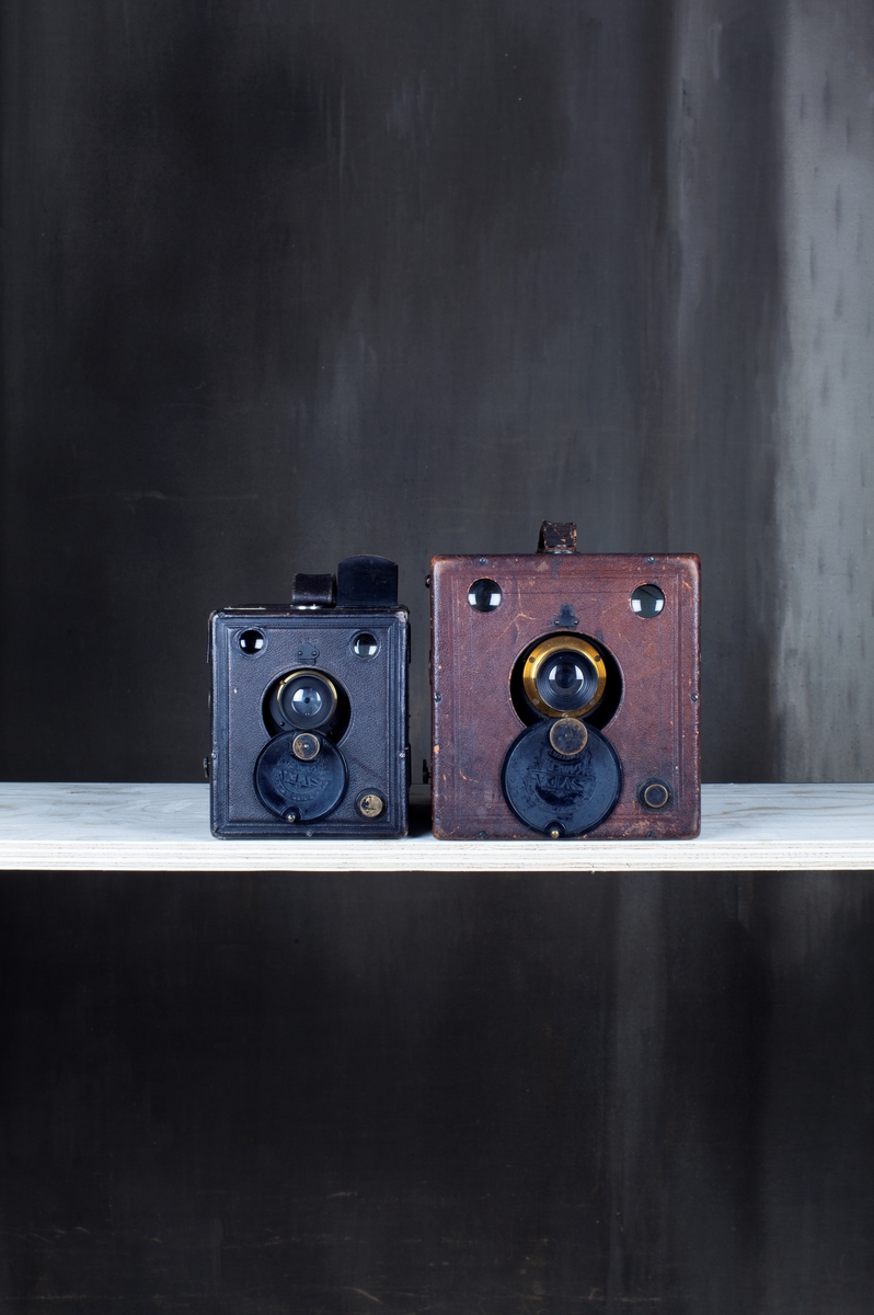 Ett par modeller i Hugo Svenssons kameraserie Svea för torrplåt och med invändig plåtväxling.