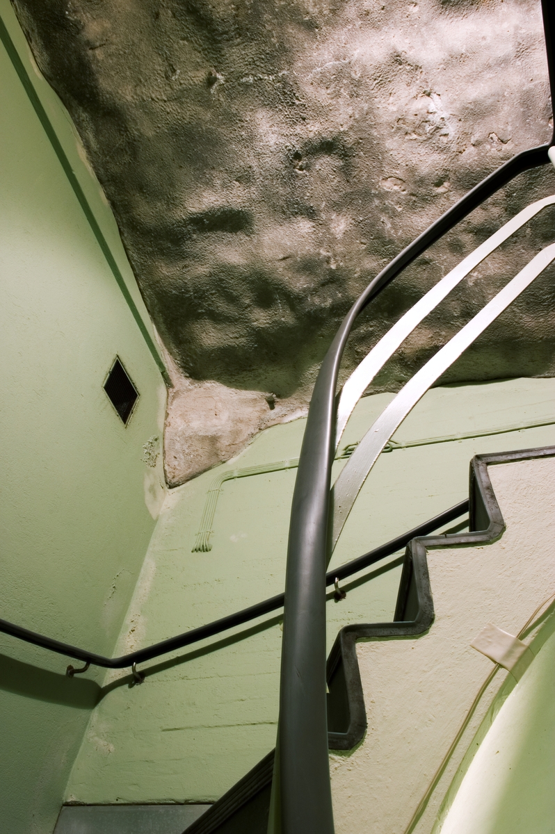 Bilden föreställer: Plan 7, rum 704. Trapphusets tak som är betongsprutat. Förklaring av system framgår av rapport :Statens Vattenfallsverk A23/60 5/4 1960.