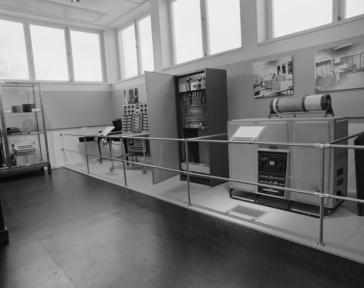 Datautställning "Från kula till dator". Hålkortstans, elektrisk differenseanalysator, anpassnings enhet D21 och SAAB D2.
