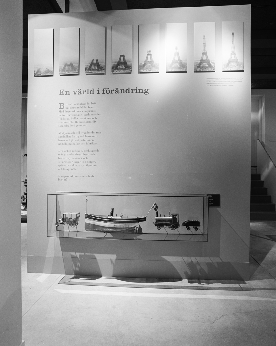 Dokumentation av Ferrum. Väggbild. En värld i förändring samt med leksaksbil-båt och tåg.