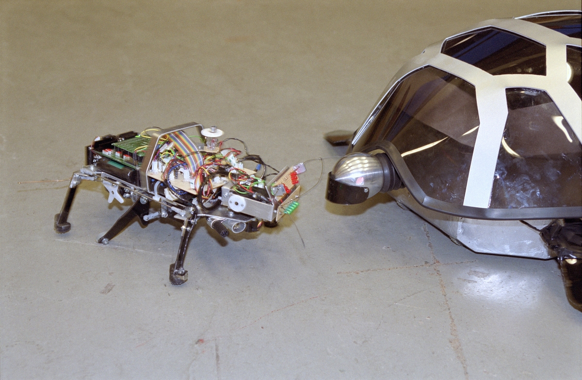 Bildtext: KTH har gjort Robotar på djur temat under en 5 poängs kurs. Dessa finns med i utställningen. Här är Bug och sköldpaddan.