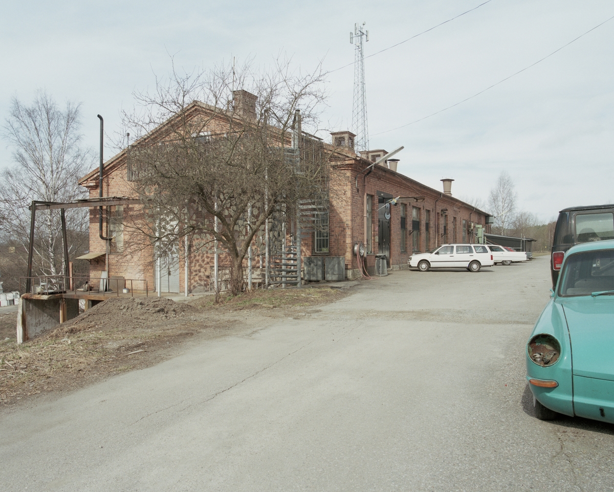 Bildtext: Den gamla vagnsverkstaden som ursprungligen var destruktionsanstalt för slaktavfall och kadaver. År 2004 rymmer den klubblokal/verkstad för motorcykelklubben Plebs Choppers.