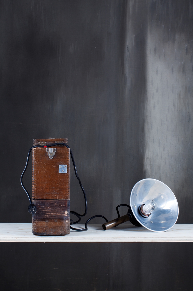 Titel: Elektronblixten Portflash av typ 1701 A med aggregat. Ur boken "Att se världen. Svensk fotografi under 175 år". Tekniska museets sista årsbok i serien Daedalus, 2016/2017. Årgång 84.