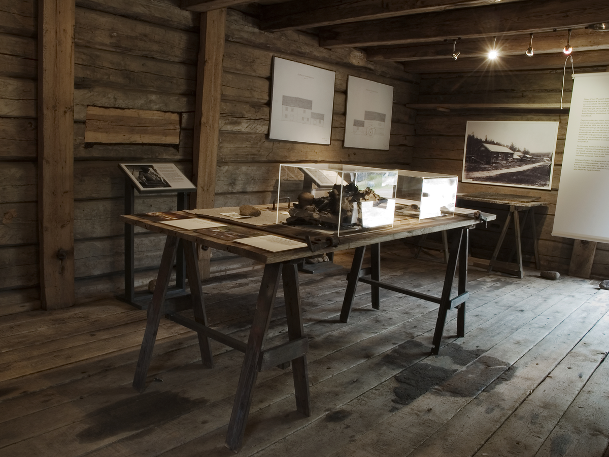 Titel: Ösjöfors handpappersbruk Fotodokumentation 2006 Interiör från pappersmagasinet med utställning om branden och demonstration av papperstillverkning