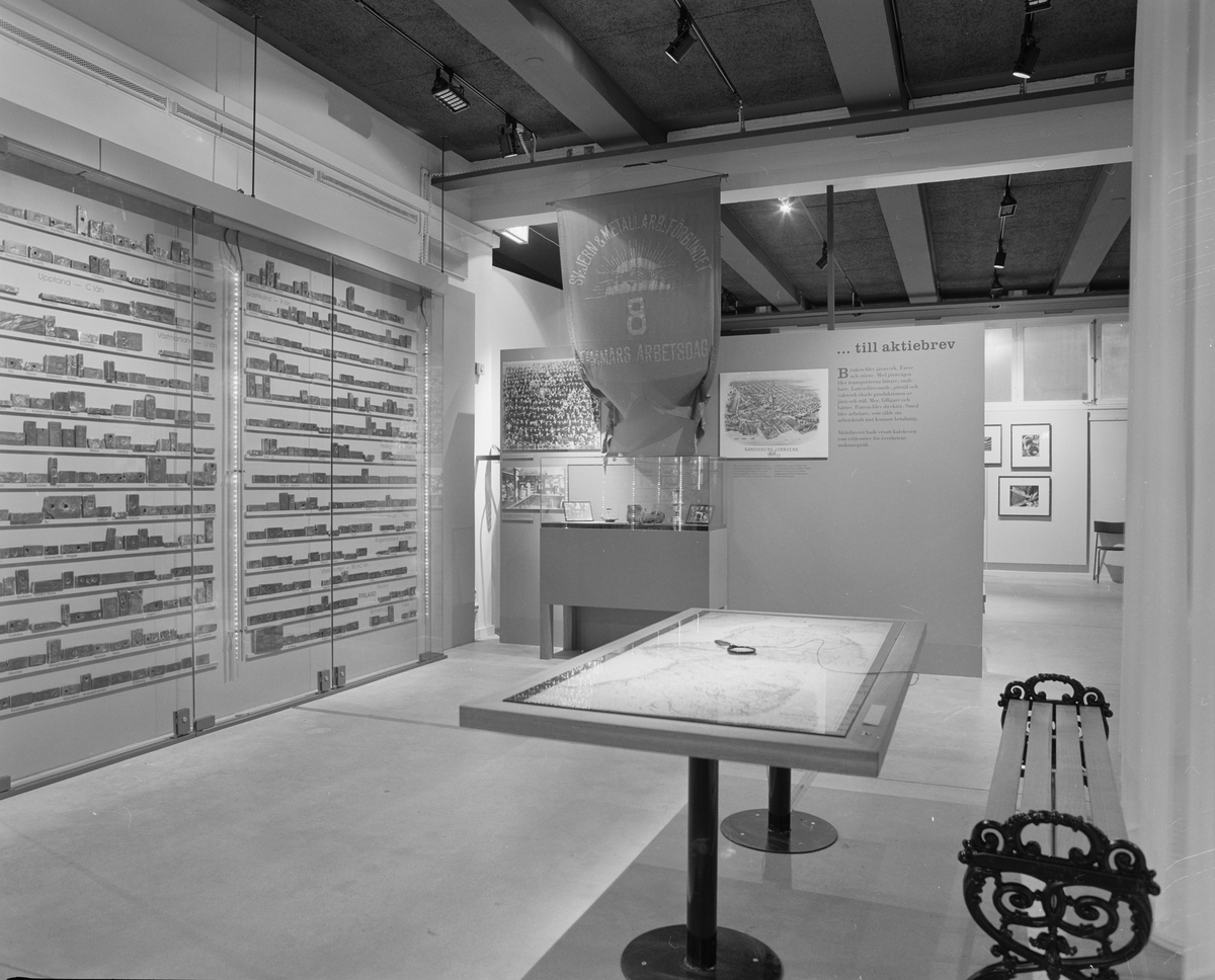Dokumentation av Ferrum. Översiktsbild stämpelvägg, ...till aktiebrev, standard & monter