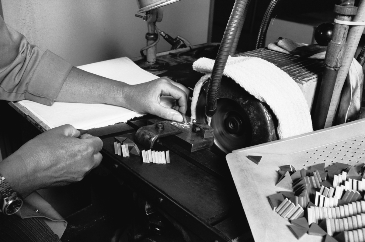 SLIPNING AV FRÄSSKÄR Skäret riktas upp mot anhåll. >>