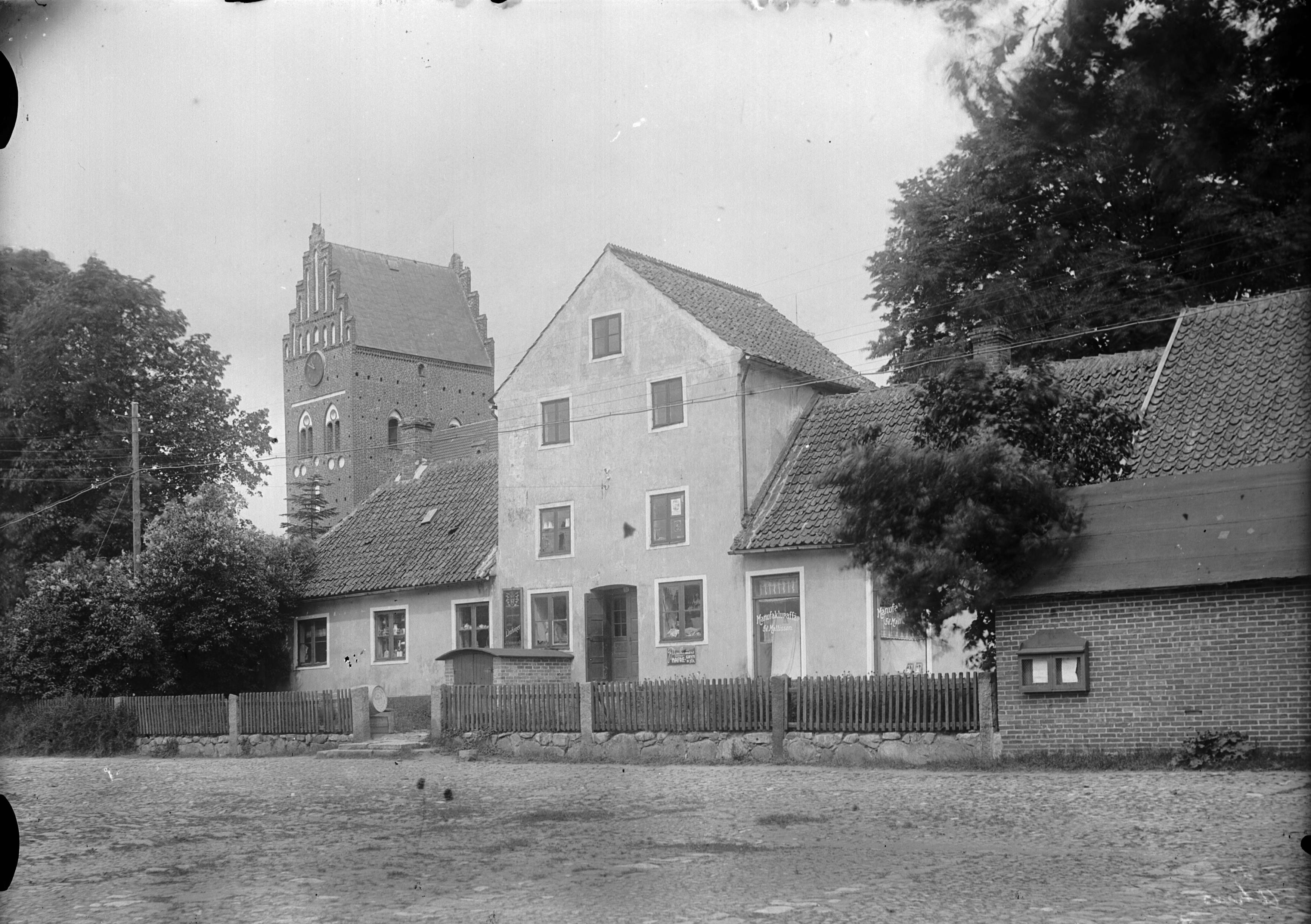 Kyrkan från sydöst med intilliggande torgmiljö.