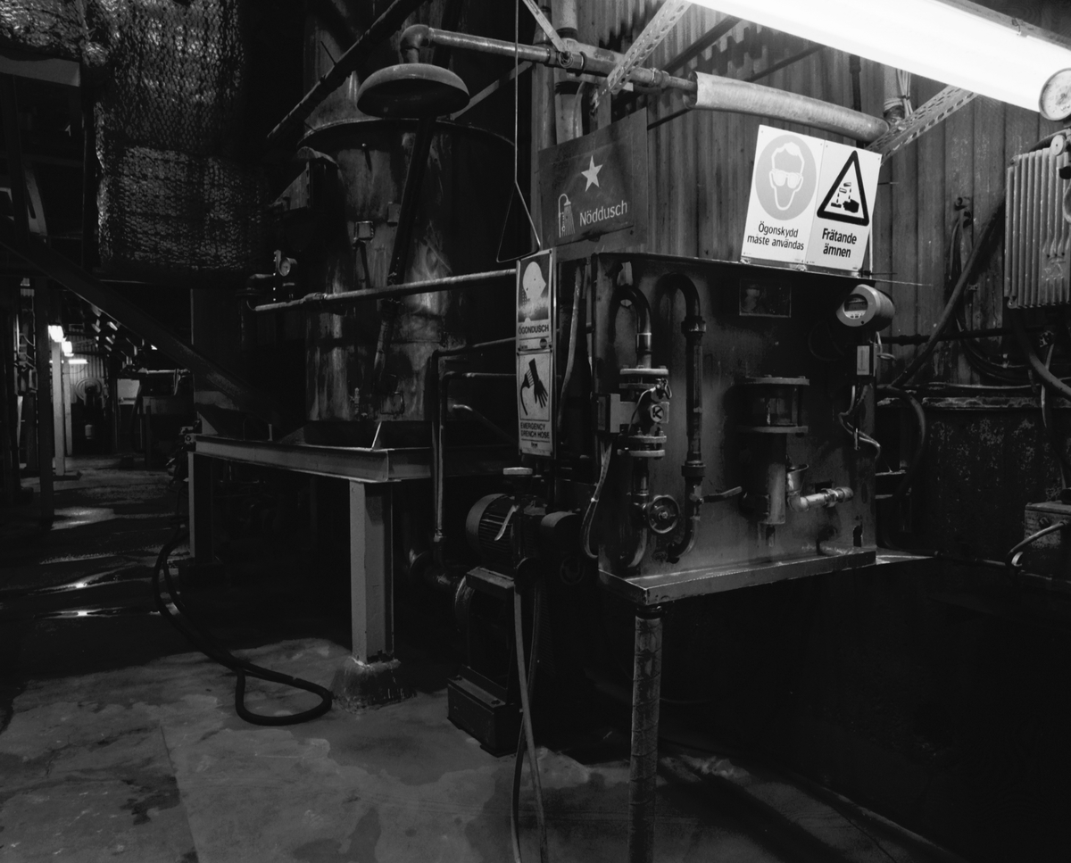 Doseringsutrustning för natronlut till rökgasreningen, allmänt kallad "lyktan". I rökgasreningssteget doseras en blandning av 50 %-ig natronlut och vatten, natronluten absorberar svavlet i rökgaserna. På bilden syns blandningsutrustningen för natronlut och vatten.