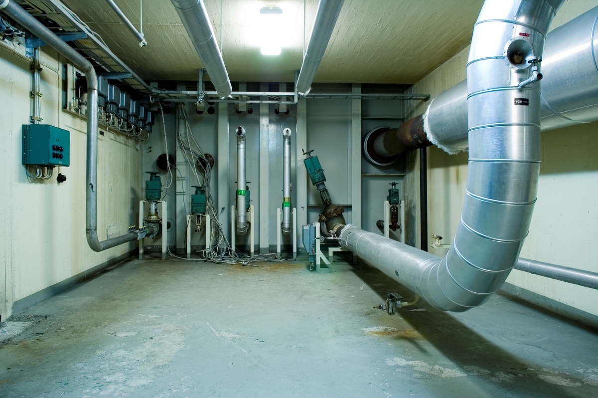 Bilden föreställer: Plan 4 rum 402. Ut och ingående ångledningar till reaktordelen. Förklaring av system framgår av rapport :Statens Vattenfallsverk A23/60 5/4 1960.