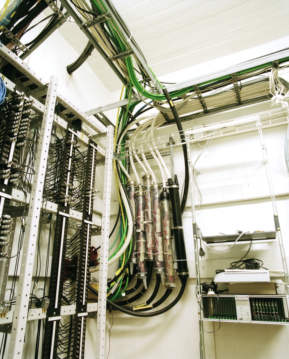 Källarlokakerna där alla servrarna står. i hörnet är inkommande kablar för internet trafiken.