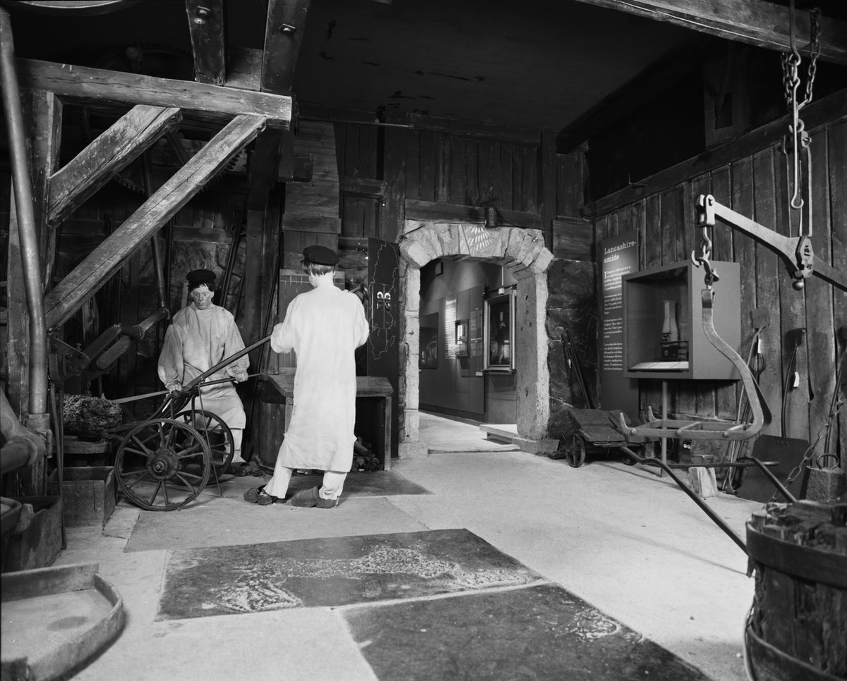 Dokumentation av Ferrum. Översikt av Lanchashiresmedjan mot det "stora blå rummet.