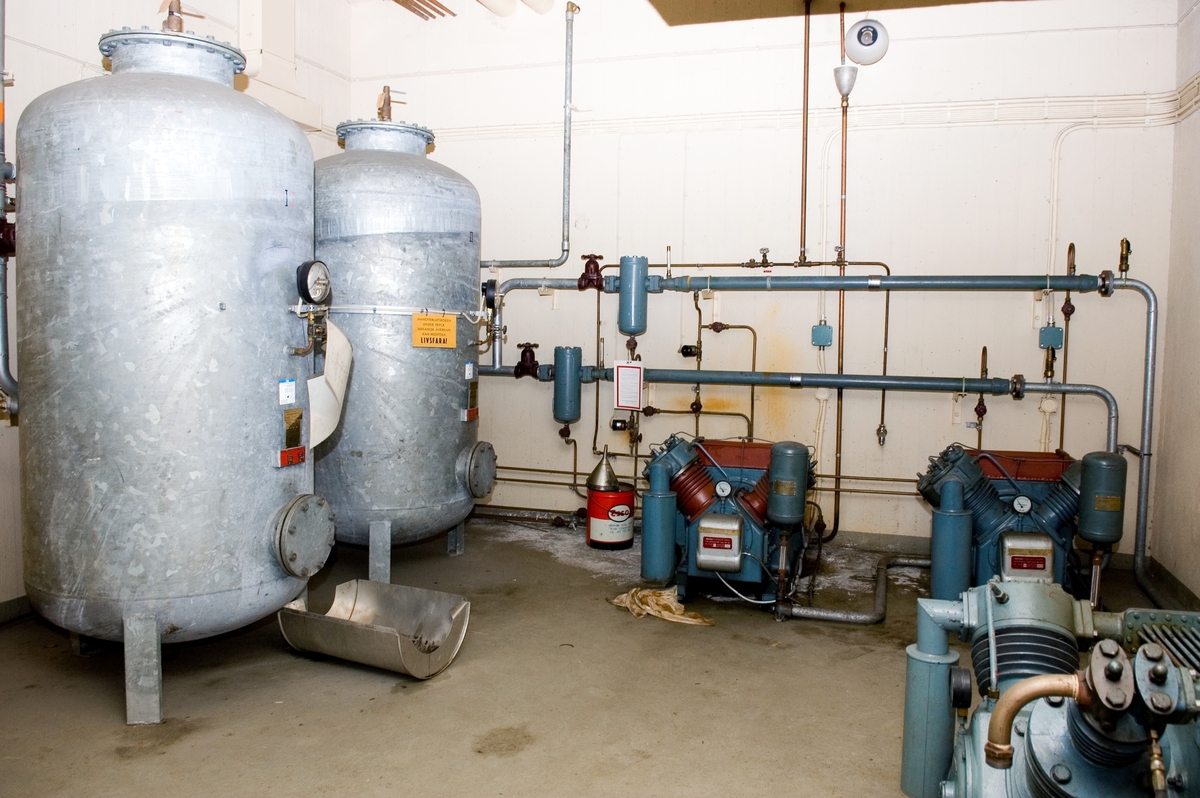 Bilden föreställer: Plan 3 kompressorrum 303. Kompressorer och trycktankar. Förklaring av system framgår av rapport :Statens Vattenfallsverk A23/60 5/4 1960.