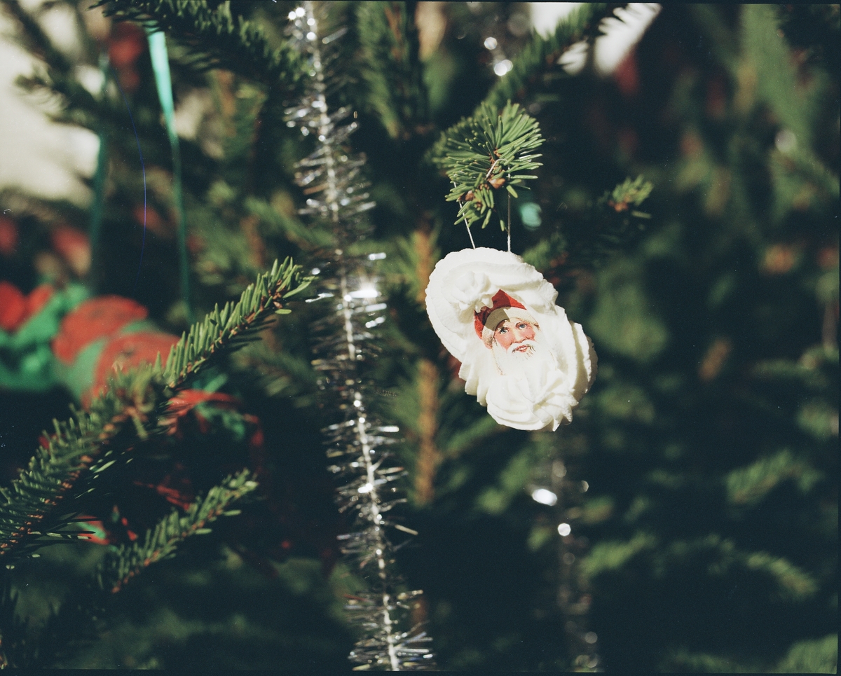 Julens kemi. Julmotiv för nyhetsbrevet. Tomte i gran.