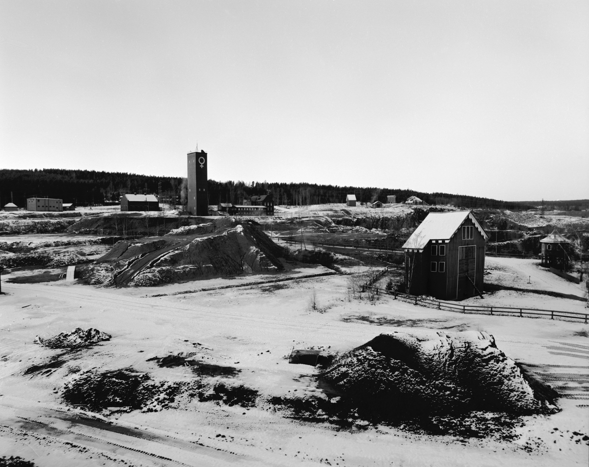 Förfrusna råvaruhögar och i fjärran Oscars lave och i förgrunden ett hjulhus.