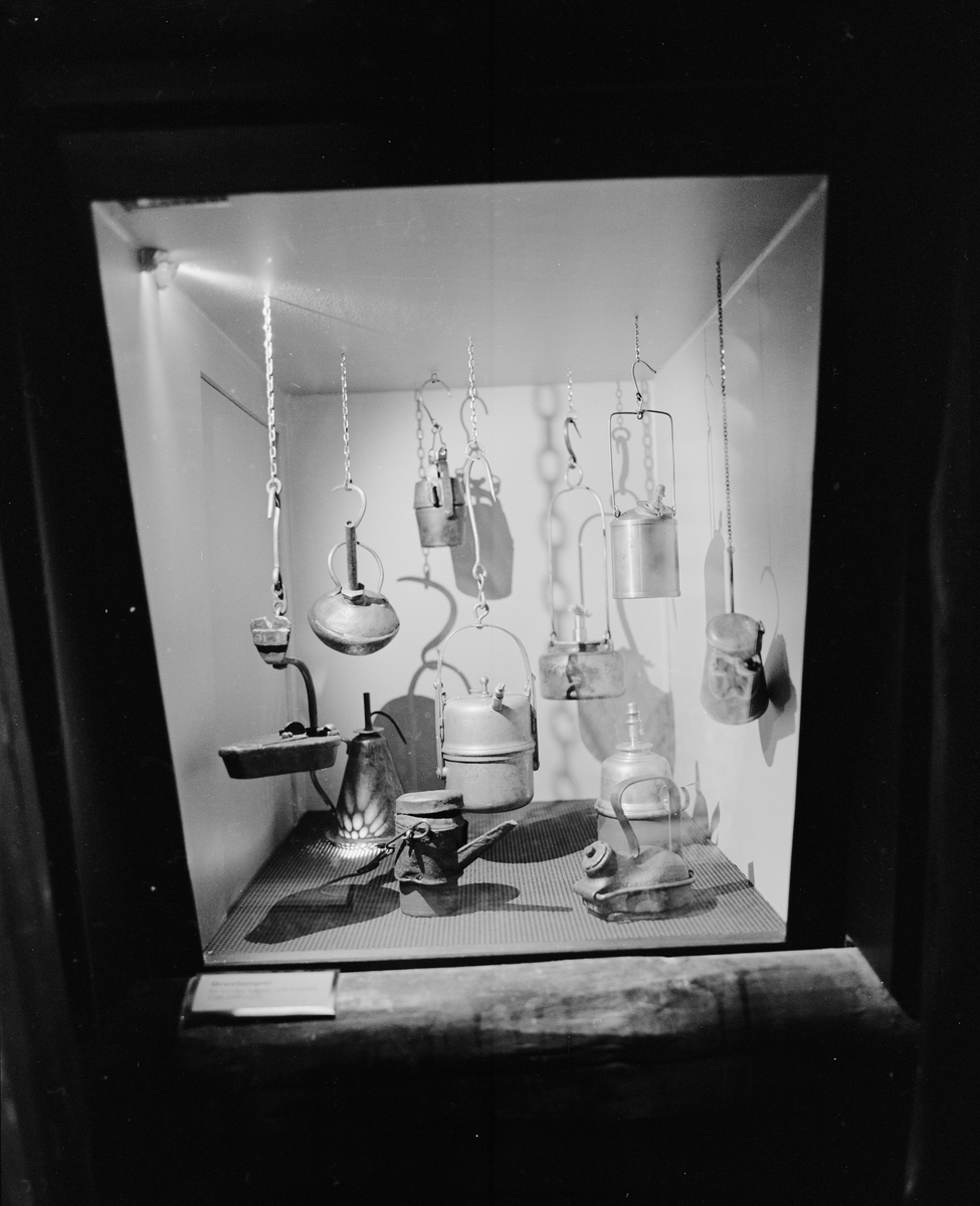 Dokumentation av Gruvutställningen. Monter med fotogenlyktor.