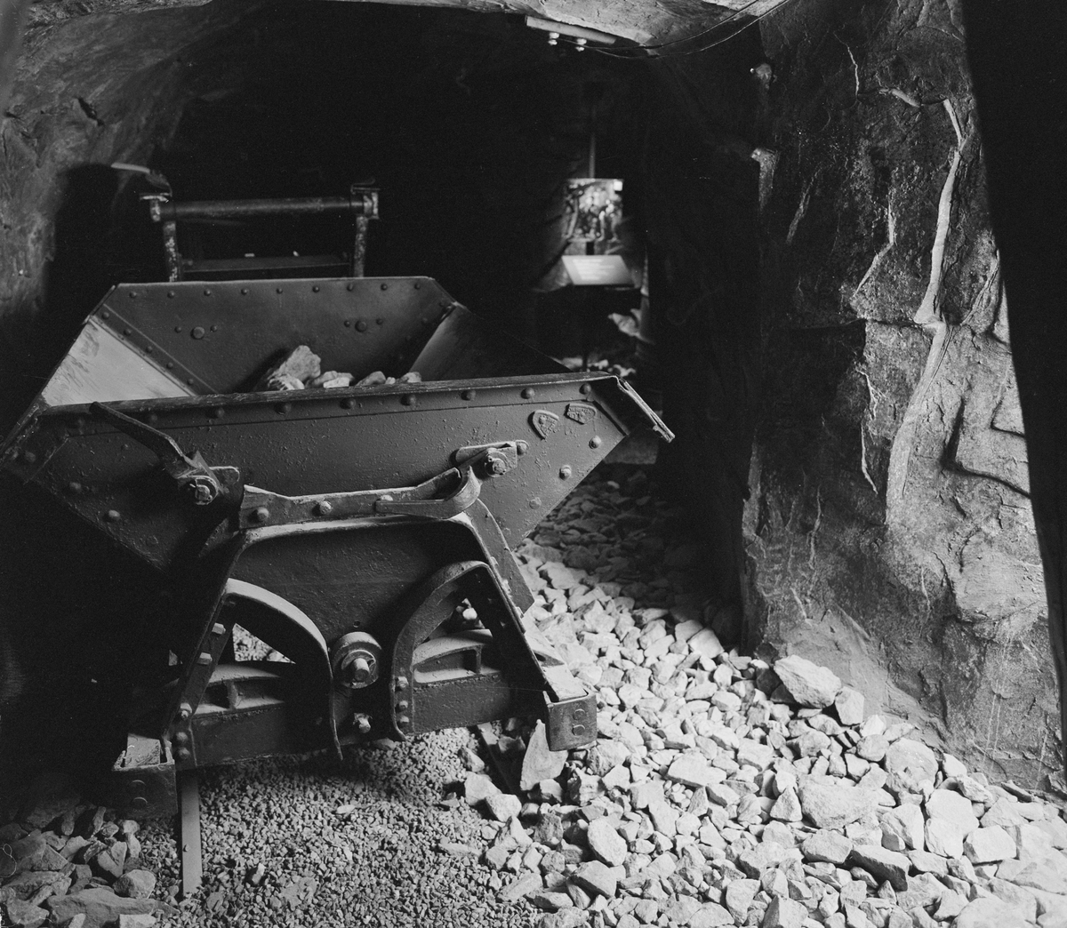 Dokumentation av Gruvutställningen. Femte rummet: "Grisen" Atlas Diesels- tryckluftsdriven malmtransport.