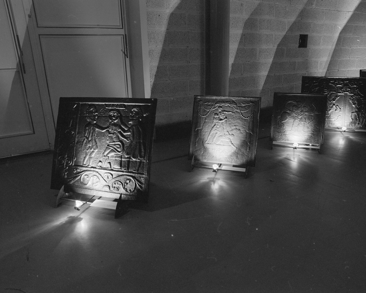 "Vallonien på Louis De Geers tid och idag" utställningen. Spishällar i förgrunden spishäll föreställande Susanna i badet.