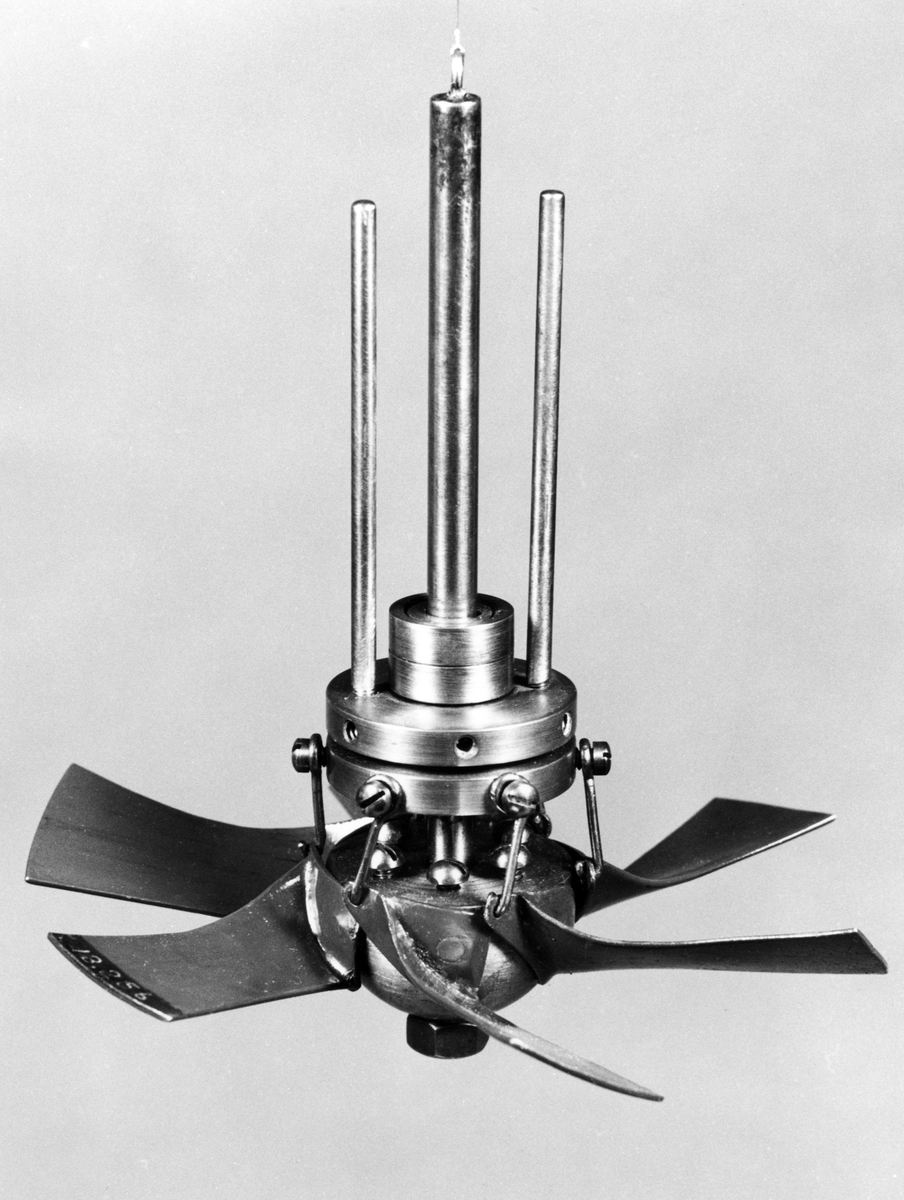 Elektriska maskiner. Modell av löphjul, tillverkad av Viktor Kaplan, för att prova sina ideér att öka verkningsgraden vid vattenturbiner genom att göra bladen ställbara.