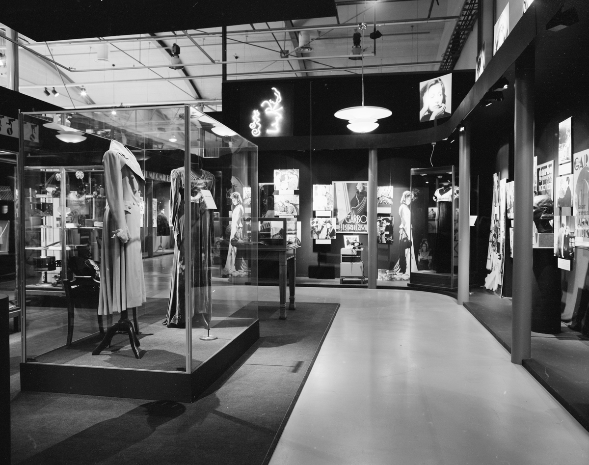 Vy över "Greta Garbo-Söderböna-Skådespelerska-Ikon". I monter 2 dräkter inlånade från Cinémateket i paris. lampa i taket original från 1937. Inför filmen 100 år gjordes en utställning "Magiska Bilder komik, erotik,>> optik" den 26 april - 12 jan 1997. Producerad av Svenska Filminstitutet i samarbete med Telemuseum och Tekniska Museet. Formgivning Mikael Sylwan och ulrika Wolff. Idé och koncept Anna-Lena Wibom.