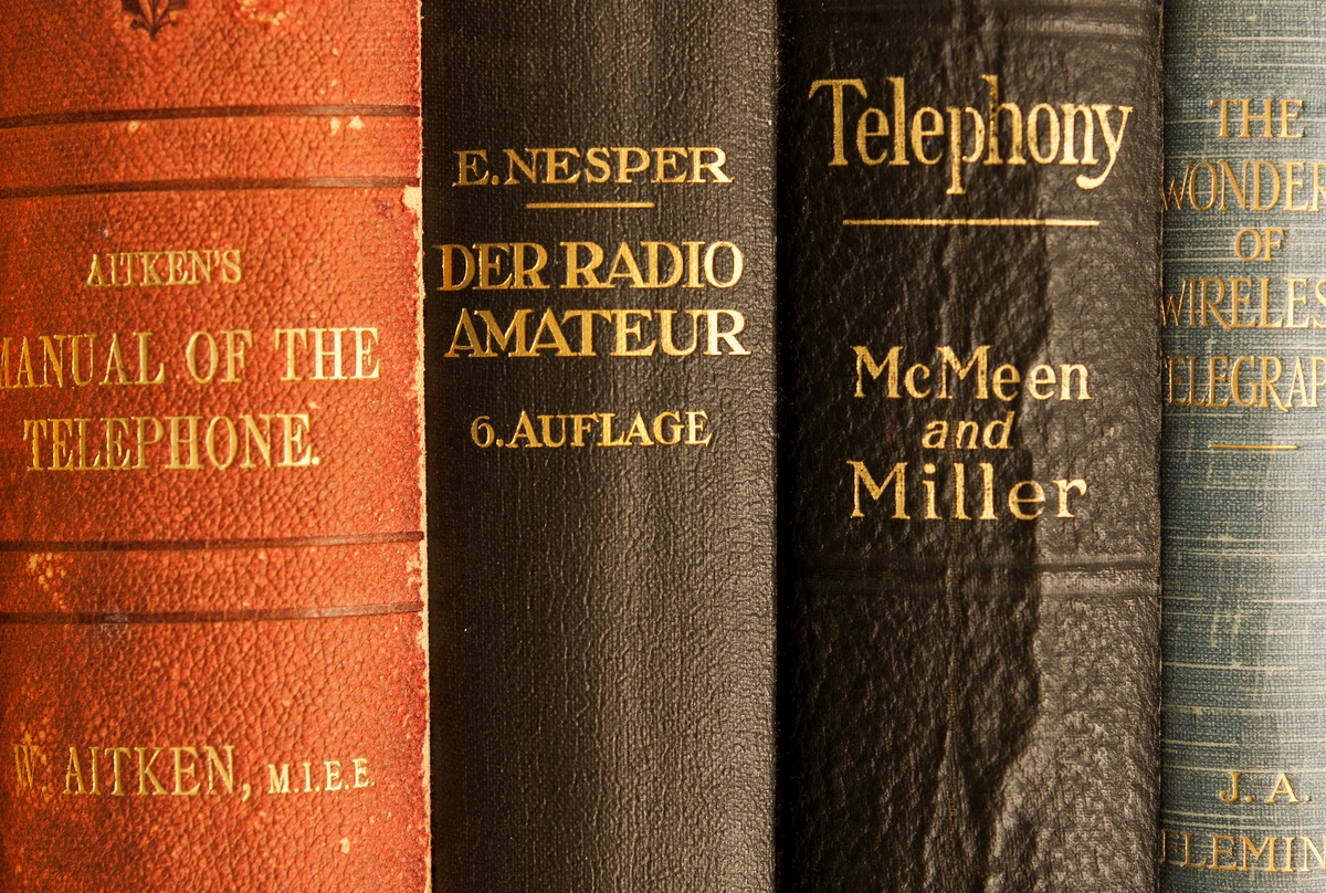 Bild från arbetet i biblioteket med den telehistoriska samlingen.