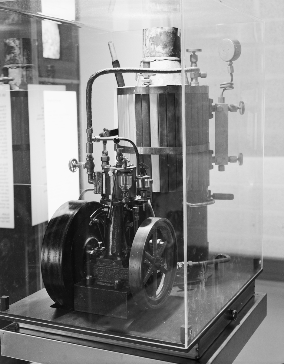 Tidsmaskinen, remdriftens tid skildras med en modell av en ångmaskin. Rör sig med hjälp av tryckluft.