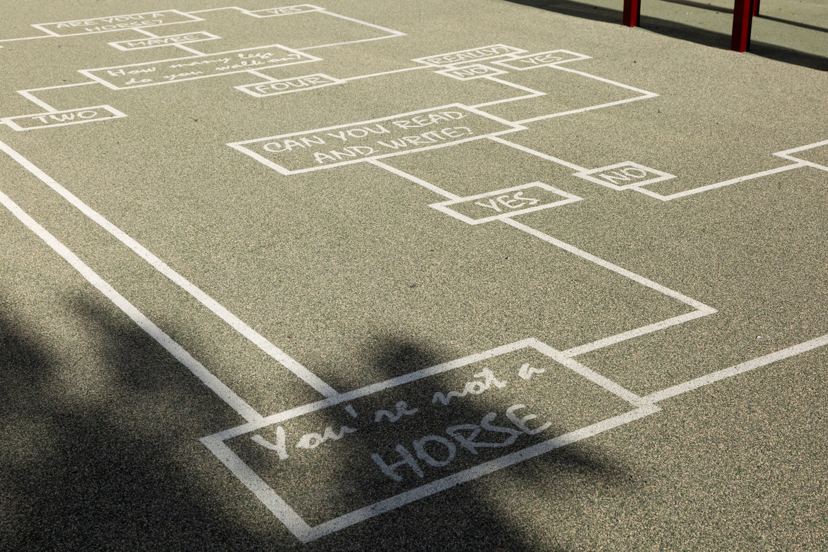 Titel: Tekniska museet exteriör med matematikträdgården, detalj.