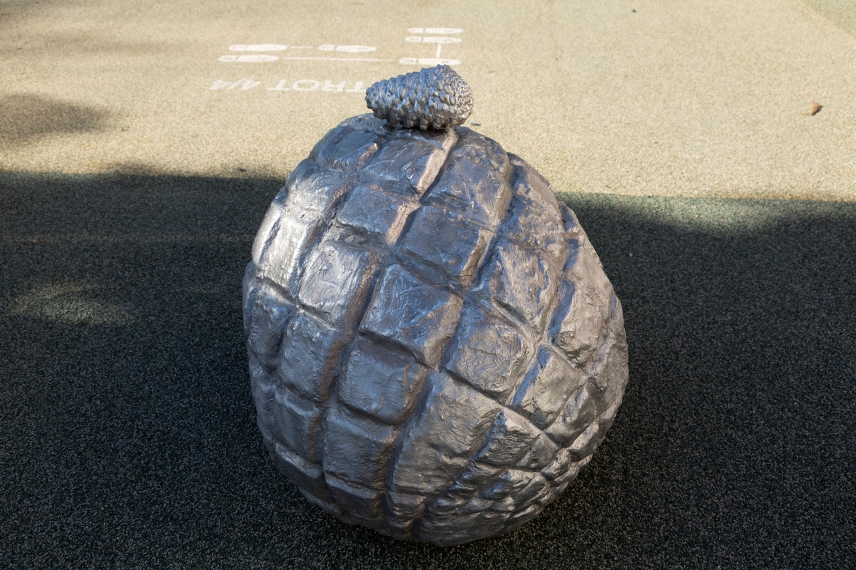 Tekniska museet exteriör med matematikträdgården, detalj.