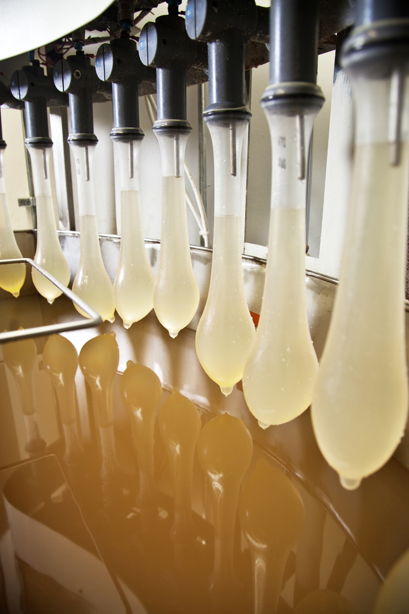 Utställningen 100 innovationer visar de viktigaste innovationerna genom tiderna. Preventivmedlet kondom. Bilden är tagen 2012 på RFSU:s fabrik i Hälsingland. Där testas och förpackas 60 miljoner kondomer per år.