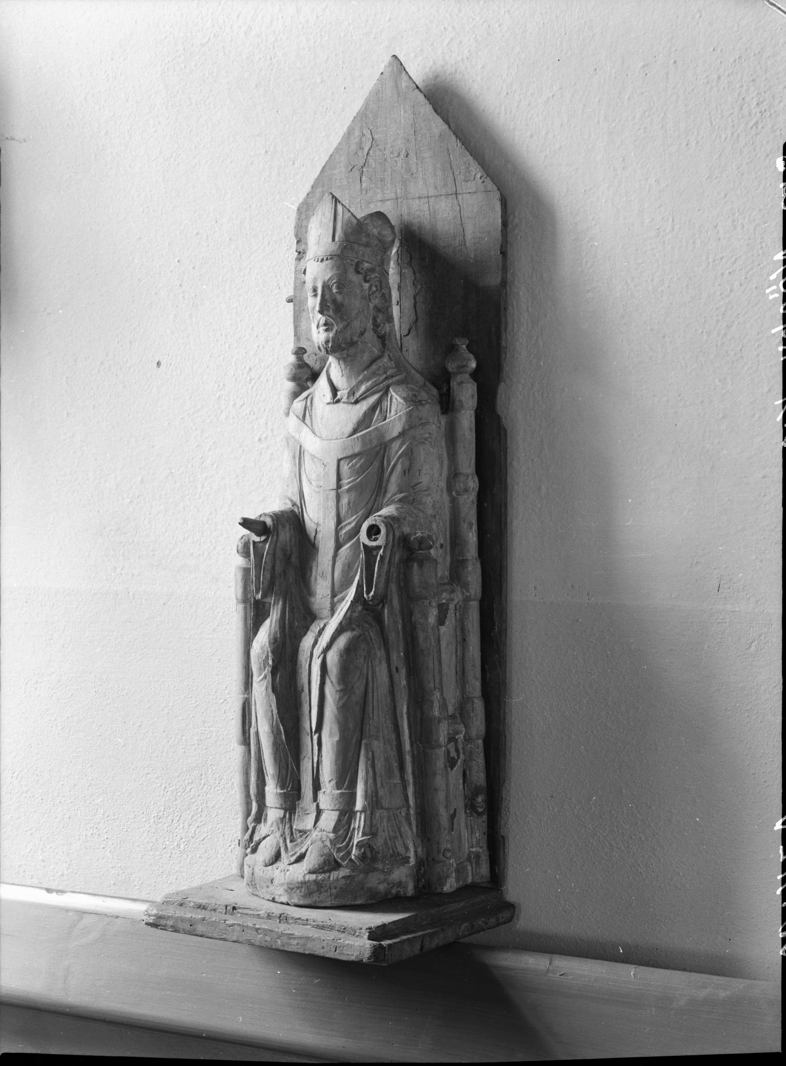Helig biskop, snidad ek, 1200-tal. Snett framifrån.