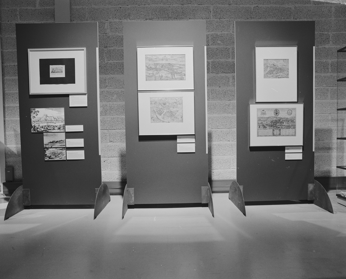 "Vallonien på Louis De Geers tid och idag" utställningen. "Landet", tre skärmar dåtida kartor och landskapsbilder, Wallenberghallen.
