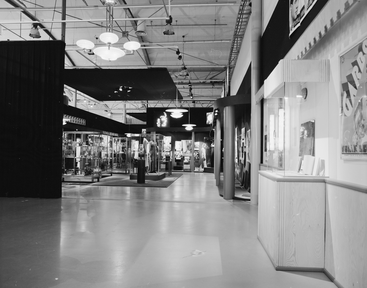Vy från "foajen" i utställningen. T.h "biljettlucka" rakt fram Garbo-avd. Inför filmen 100 år gjordes en utställning "Magiska Bilder komik, erotik, optik" den 26 april - 12 jan 1997. Producerad av Svenska Filminstitutet i>> samarbete med Telemuseum och Tekniska Museet. Formgivning Mikael Sylwan och ulrika Wolff. Idé och koncept Anna-Lena Wibom.