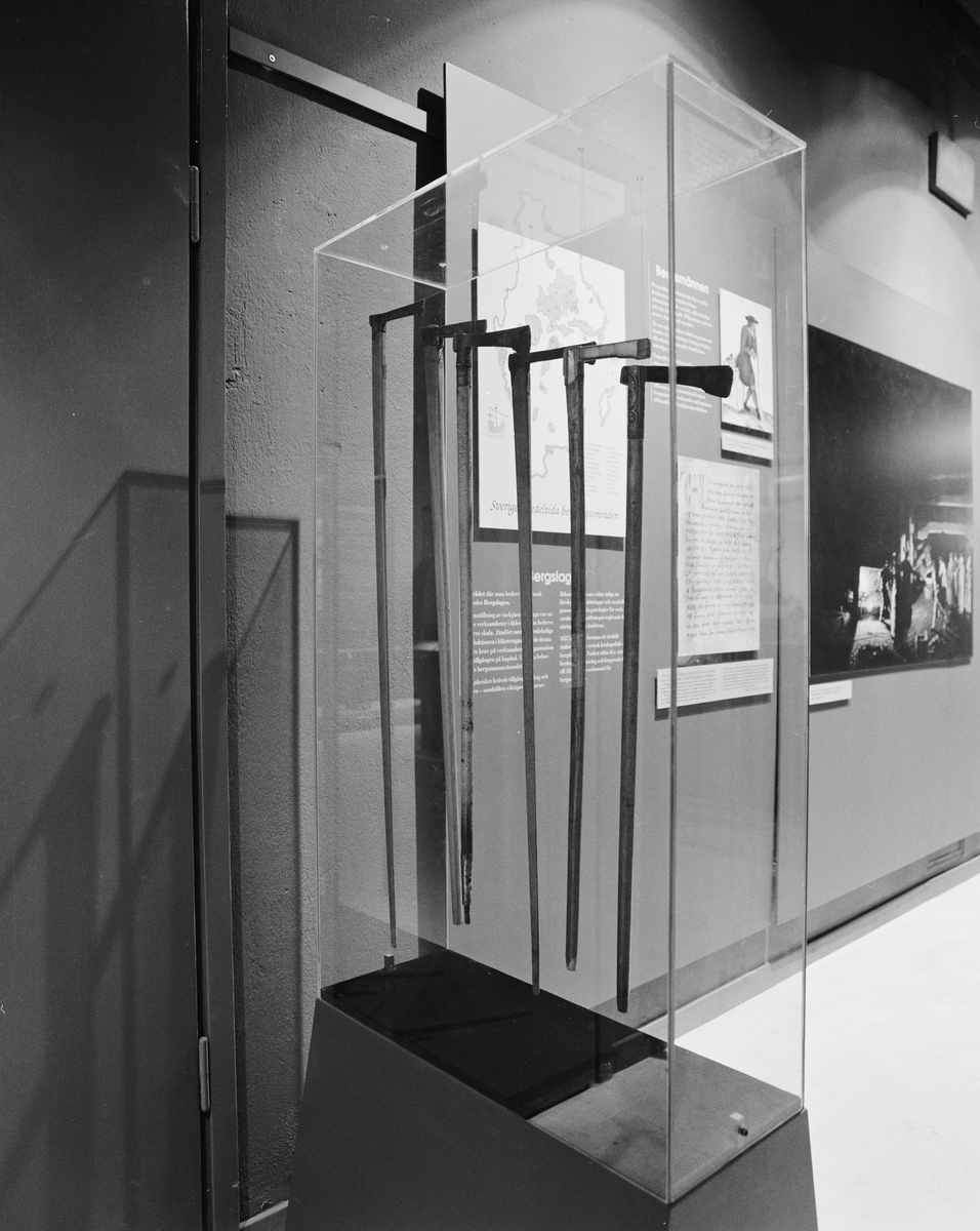 Dokumentation av Ferrum. Monter med bergmanskäppar.