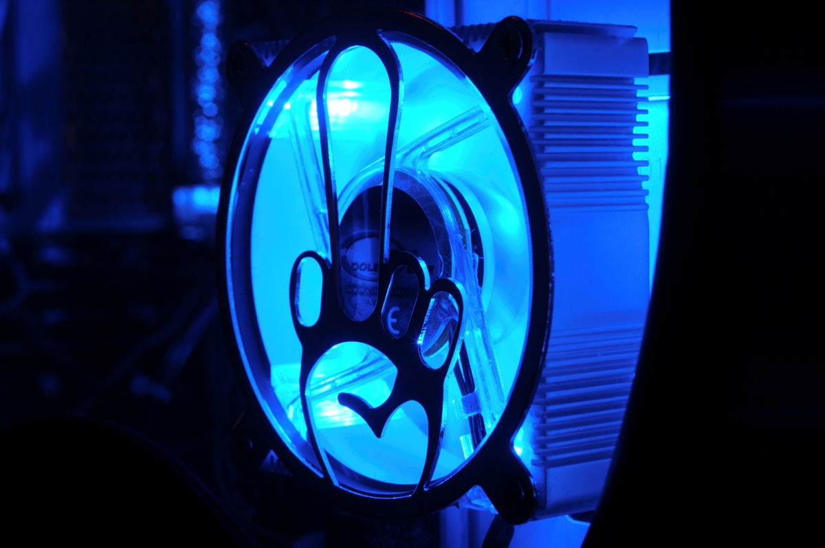 Andreas Gärdebrand i Hovmantorp byggde samman två datorer för att skapa denna blålysande 40 kilo tunga dator med namnet Heavy.