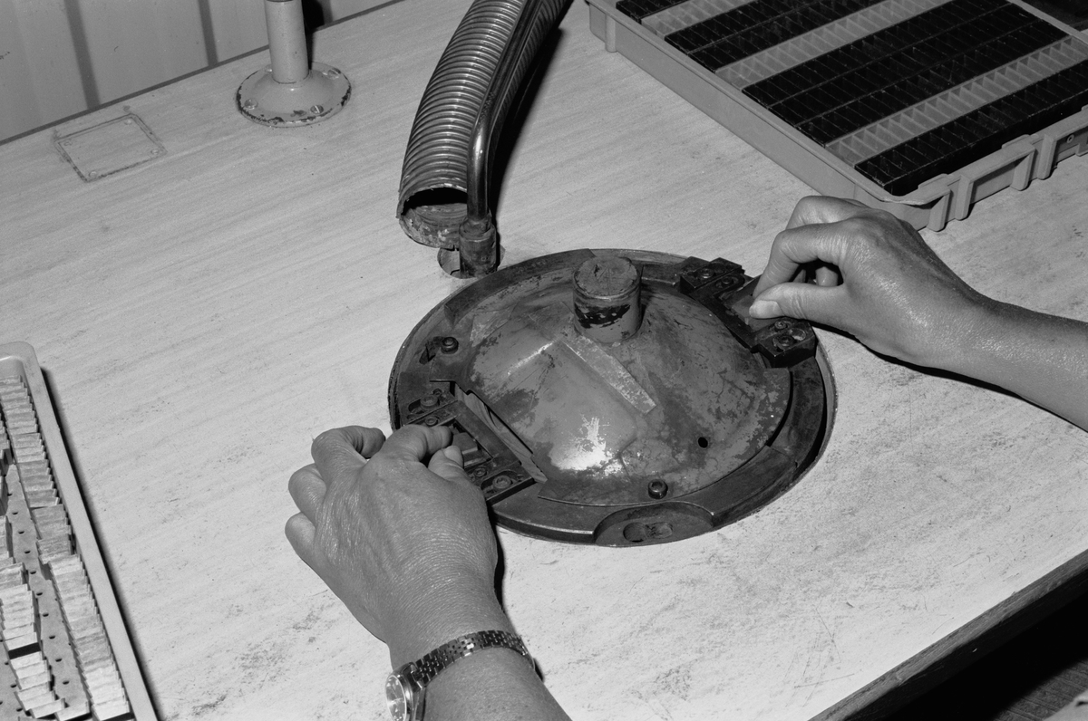 SLIPNING AV FRÄSSKÄR Slipning pågår. Obs att två skär slipas samtidigt. >>