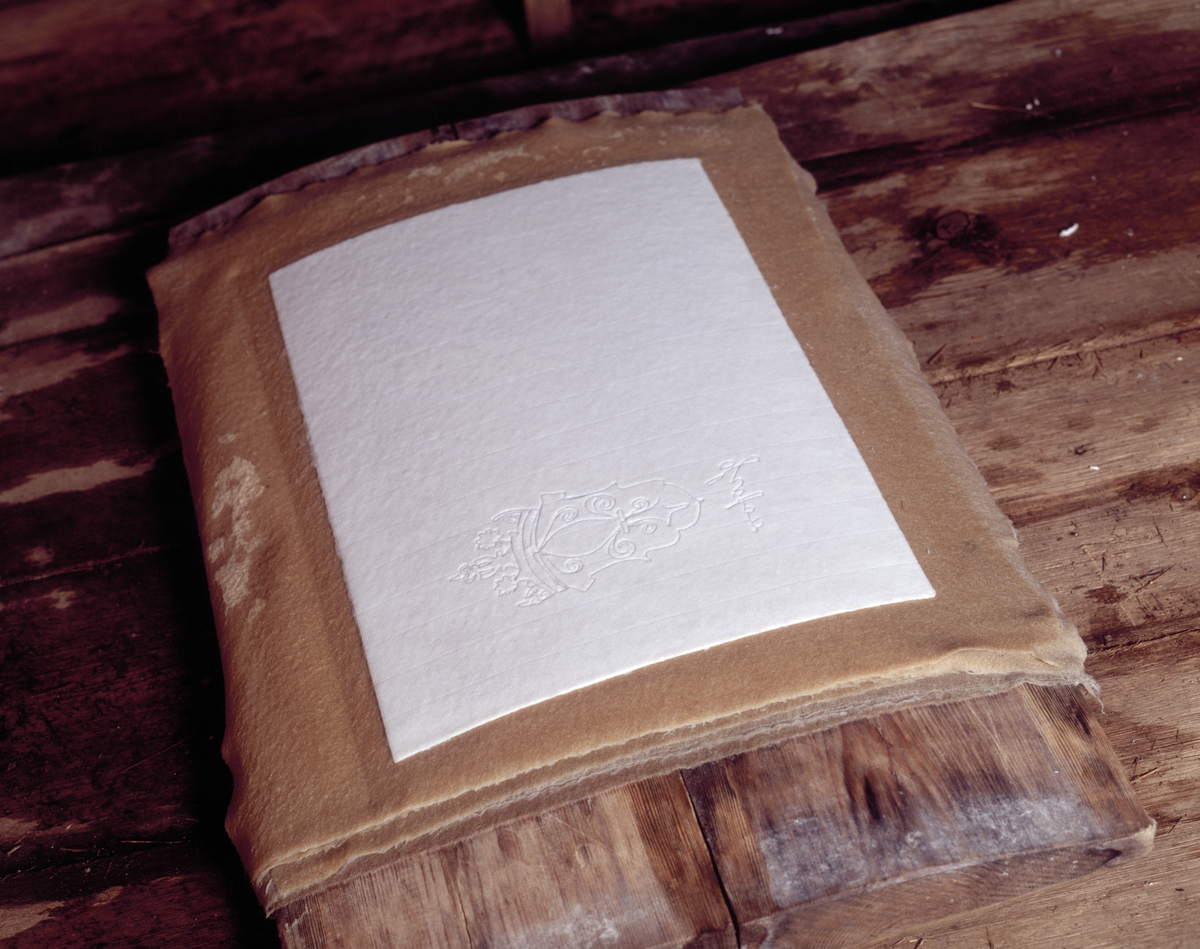 Ösjöfors. Handformat pappersark med vattenmärke på guskbrädan. 1980-tal.