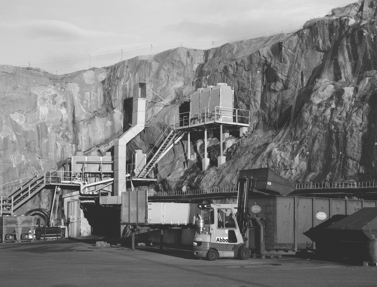 Infarten till Abba Seafoods råvarulager i Bergrummet i Kungshamn. Anläggningen etablerades 1953-1954 av Statens beredskapsnämnd och omfattade ursprunligen 4 lagerrum. Abba Seafood har i två etapper, 1972 och 1995, sprängt ut ytterligare 4 lagerrum.